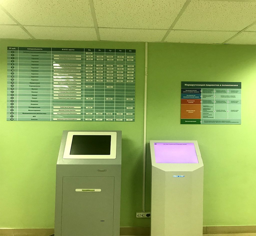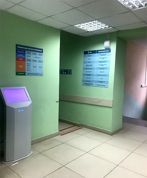 Планируется запустить инфомат, где посетители могут самостоятельно записаться на приём к врачам специалистам и на медицинские исследования.