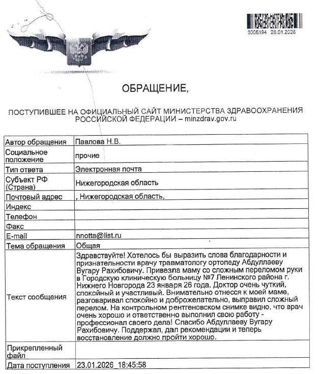 Отзыв о работе врача